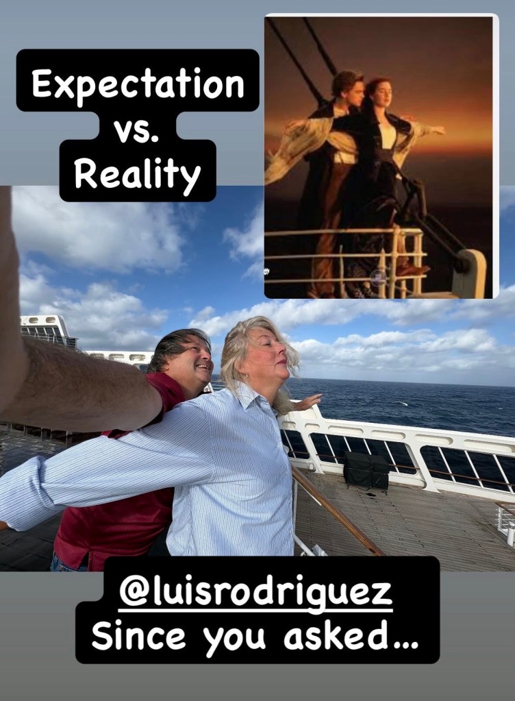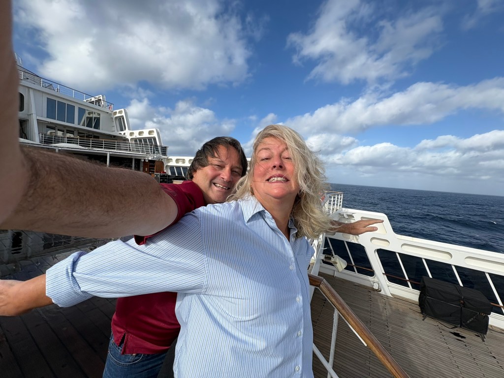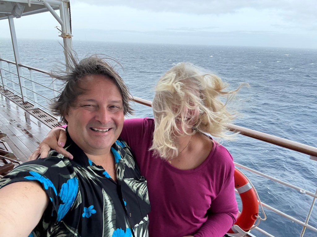 And speaking of pictures, a friend sparked the idea of us recreating the iconic Titanic picture up on the deck, and of course we couldn’t resist. I think the Titanic movie neglected a few of the more realistic elements of a winter Atlantic crossing, such as CRAZY WINDS, but don’t worry… we are happy to share what it REALLY looks like with you. Enjoy!