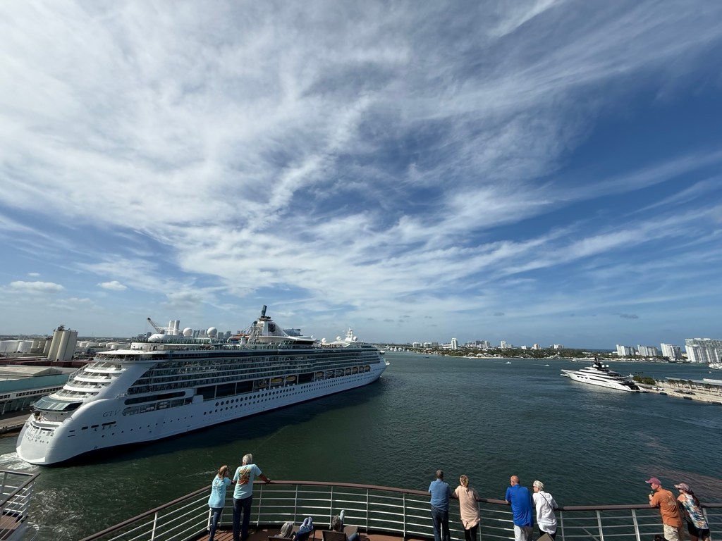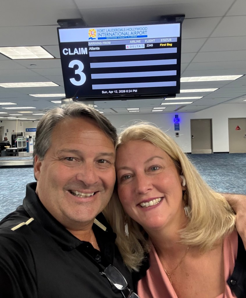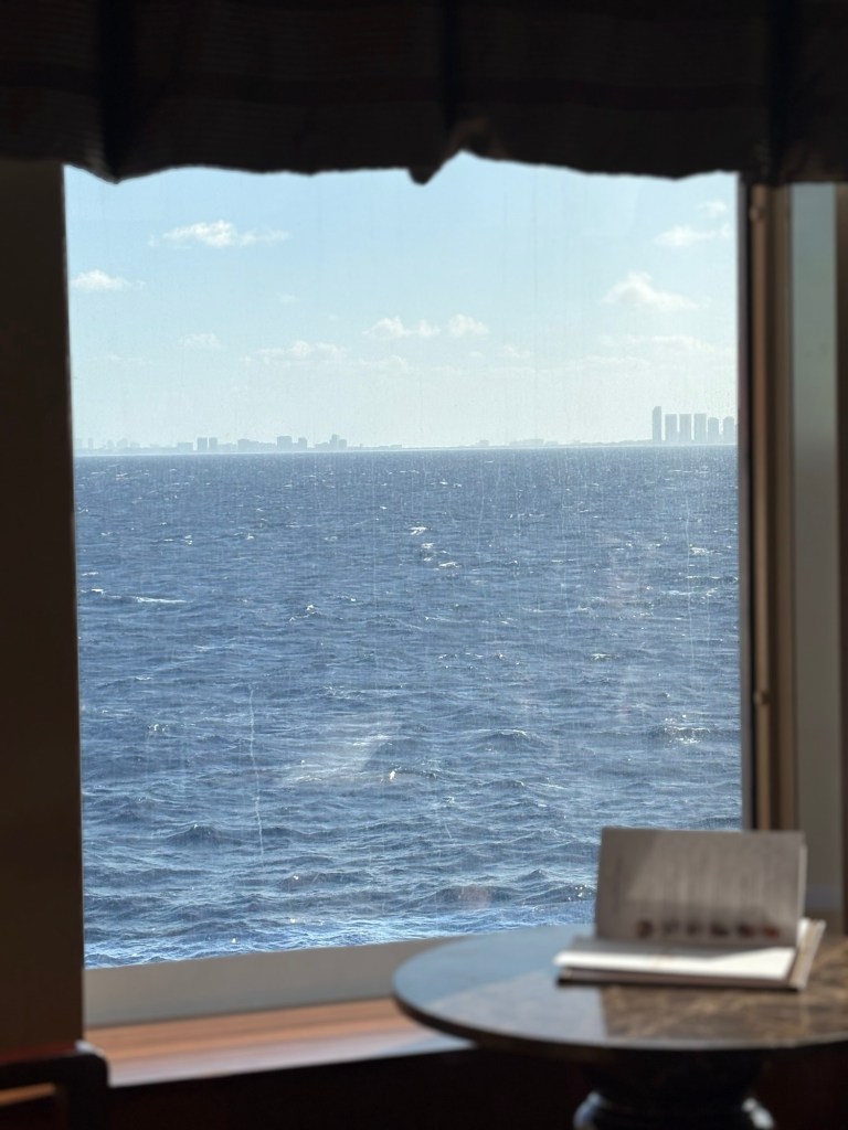 Yesterday we left Atlanta and flew down to Fort Lauderdale to spend the night before we boarded the ship. Our Delta flight departed about 30 minutes late- no big deal- but when we got to Fort Lauderdale, only one of our two bags had made the flight. After a visit to baggage services (the office in the airport no one ever wants to have to go to), we learned for some reason our second bag was on the next plane in from Atlanta, and we were told to sit and wait for that to arrive. It was only about another 45 minutes before it came, and our bag was, in fact, on that flight. So weird. No idea why our bag decided to take an extra hour in Atlanta and enjoy itself (I picture it rolling it’s little self down the road and going to the Varsity for a hotdog), but frankly we were just glad to get it before we got on the ship!