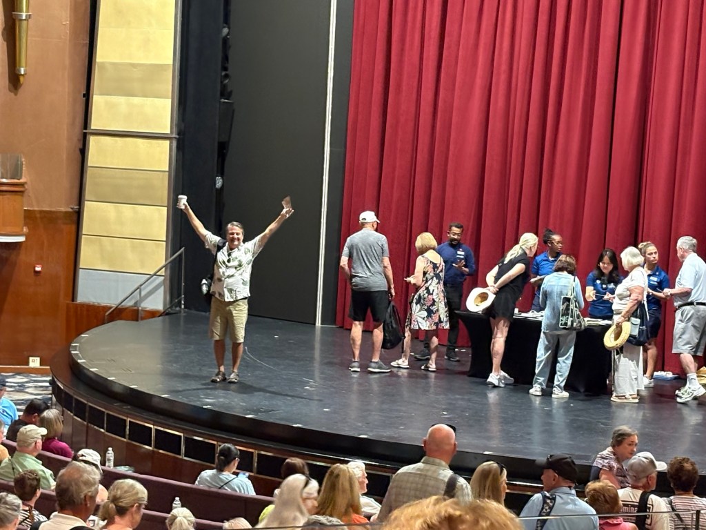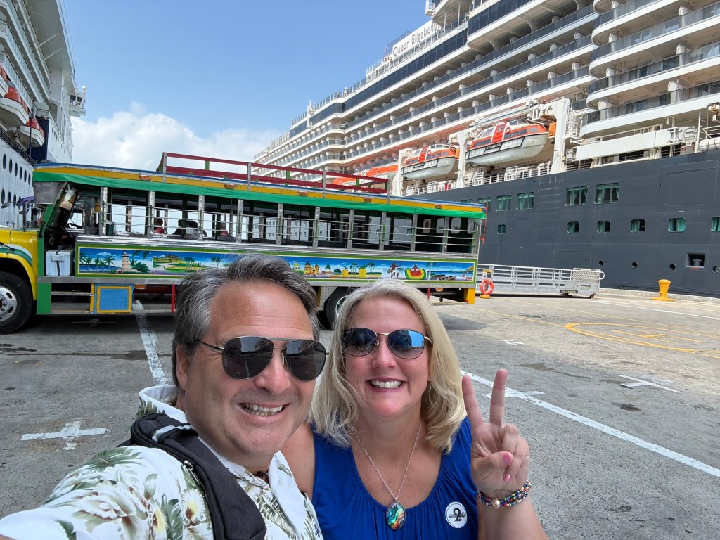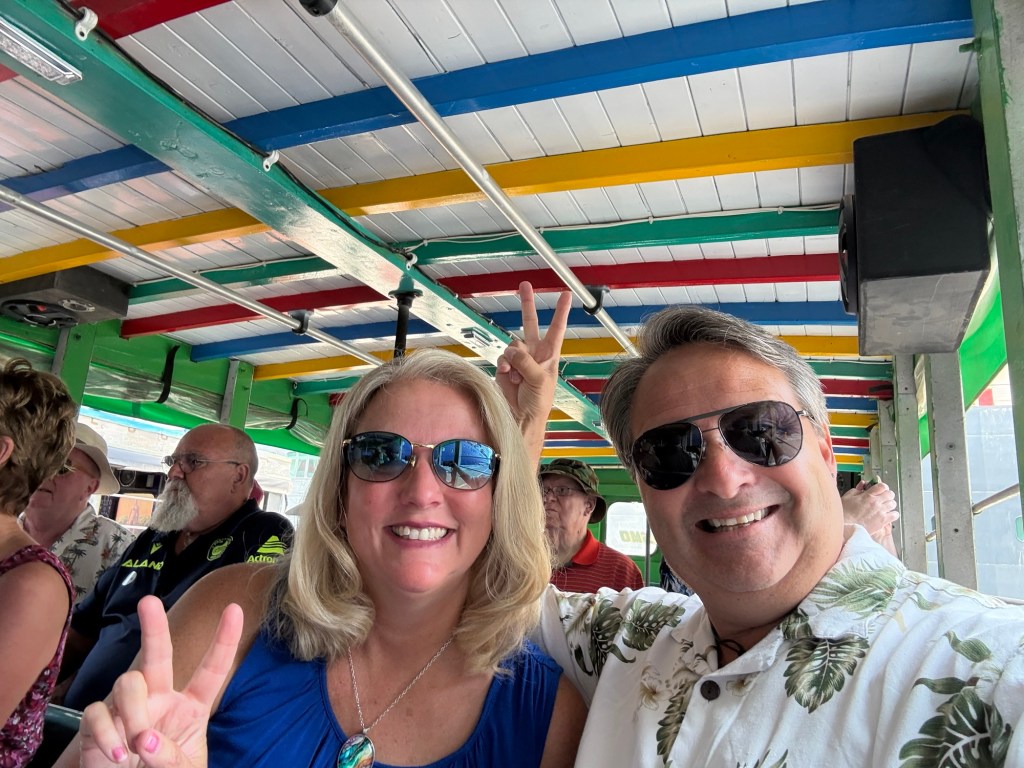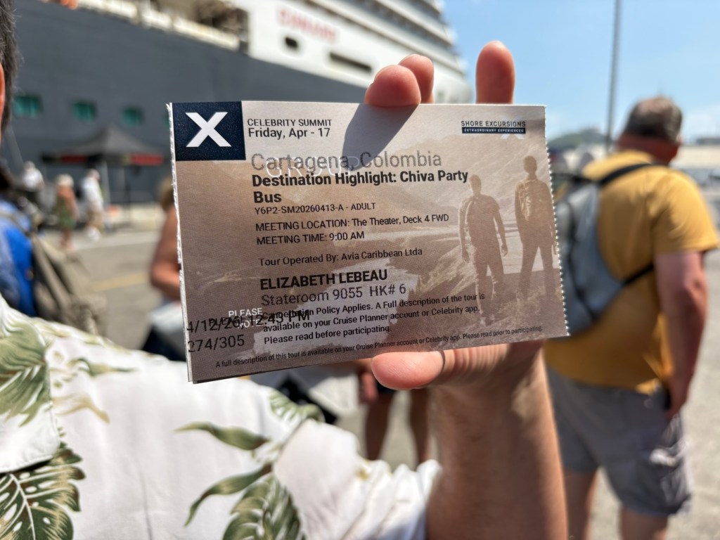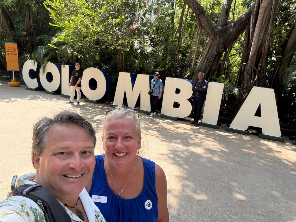 If you are looking at the Chiva bus pictures below, phito one requires some background explanation as to why it made the blog. Our ship strangely decided to schedule every single excursion into Colombia today to start out of the theater on the boat. This made for insane crowds at the theater this morning, where we all had to line up and walk across the stage to get our excursion tickets and information. I was lucky enough to snag some of the rare available seats in the theater, so I was sitting and waiting for him. For a reason only Rob and God know, he decided this morning was his moment to entertain the cruise ship masses, so when it was his turn to walk to the table and get our tickets, he turned around and waved and danced for the audience. Of course this led to thunderous applause from hundreds of bored passengers. And this was all before we got to the “bus bar.” I might or might not have hunched down in my seat in mortification… err, I meant pride… a little as he was returning to me 😂.