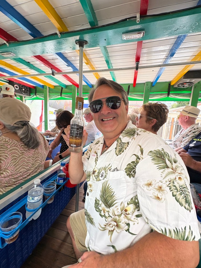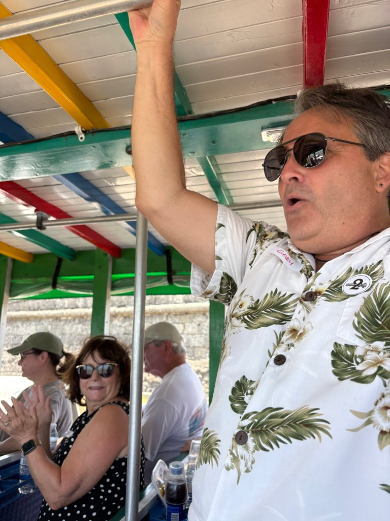 Right from the start, Gary had us all up dancing, singing, learning new songs and phrases in Spanish, playing games, and just ensuring we had a great time. And we did!! There are apparently no open container laws nor seatbelt laws on a Chiva bus, so we rolled through the city standing up and dancing, shouting at passing buses (Gary told us to point to every other bus we passed and yell “Aburrido”/“Boring” as we rolled by 🤭), and waving around the local beers or rum bottles that Gary distributed quite freely.