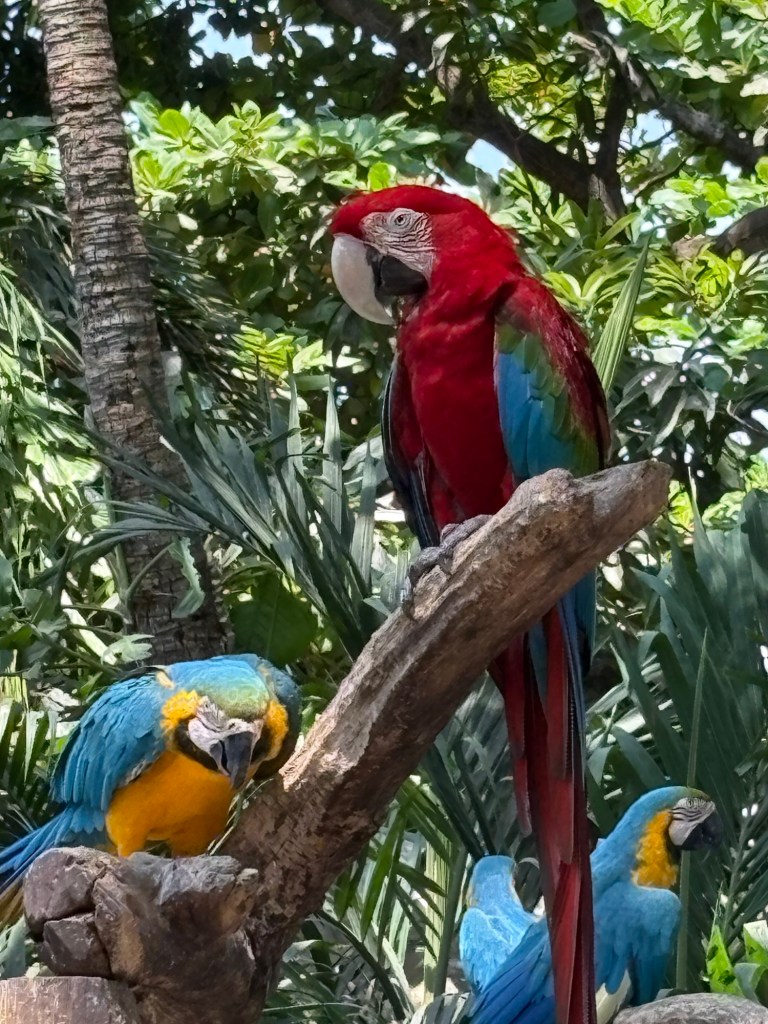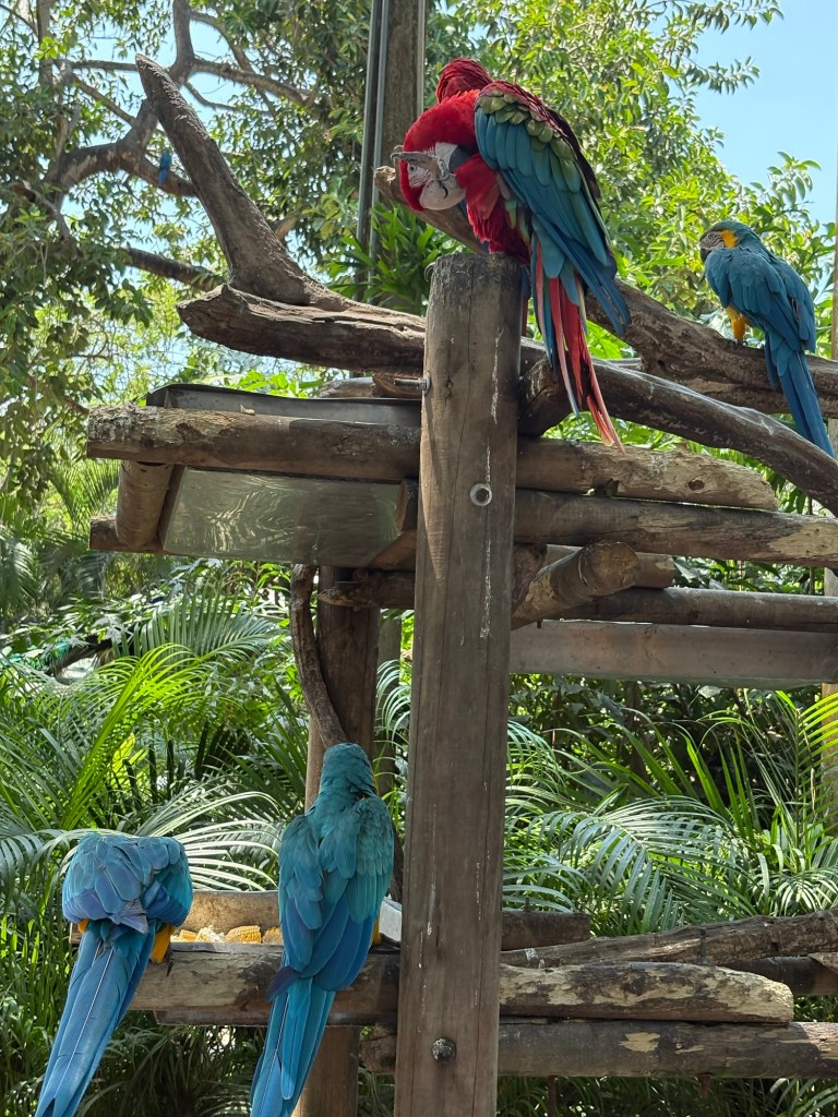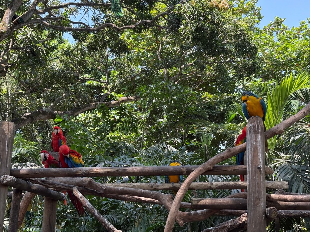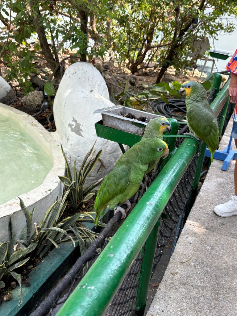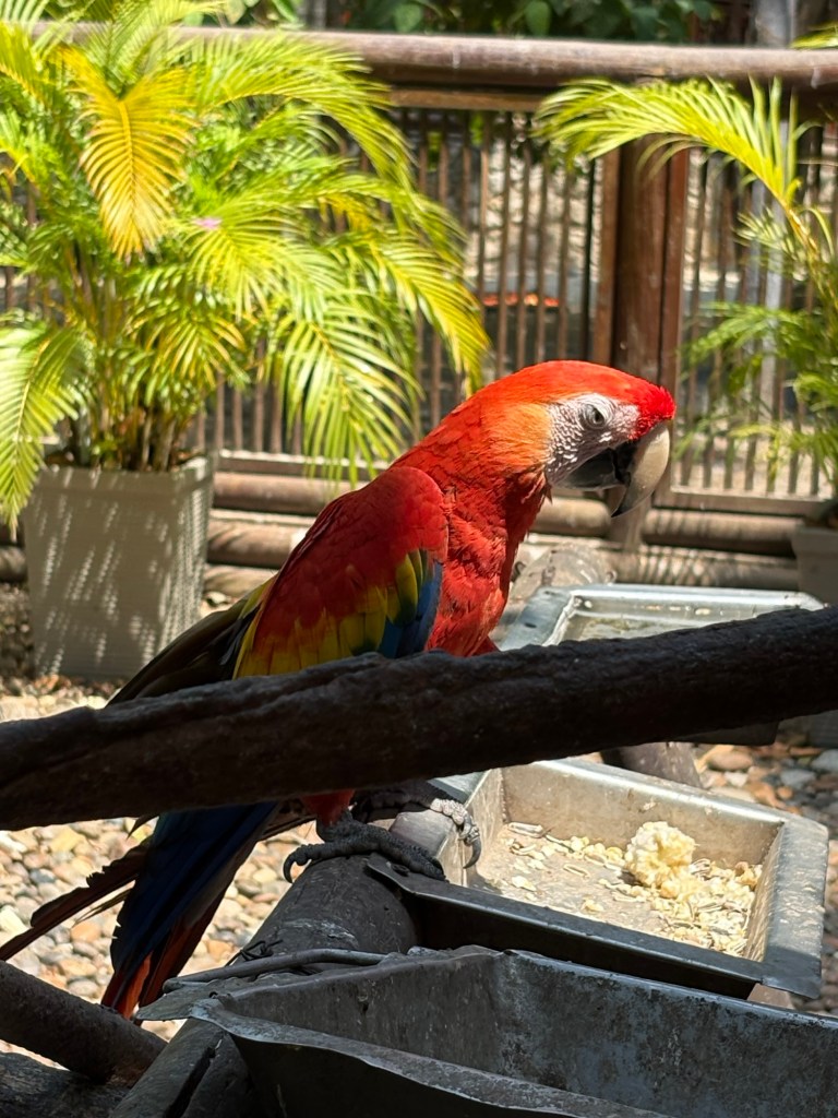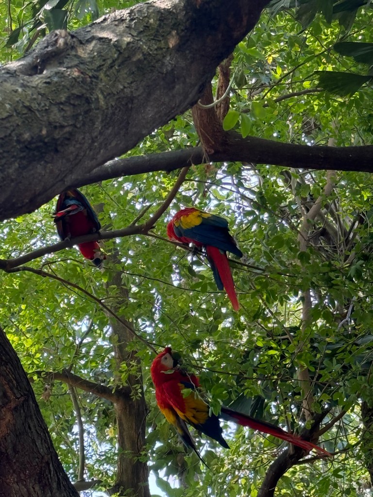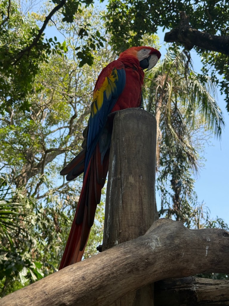 One of the most wonderful parts of our day came about at the end of our tour when we were dropped off at the entrance to the port. The wonderful people of Cartagena built a beautiful (free!) 10,000 square meter eco-park right at the entrance to the port, so tourists coming and going from cruise ships could walk right through it. The park wildlife includes parrots, macaws, sloths, flamingoes, monkeys, and more… we were in heaven! Rob even got to pet a friendly little bird.