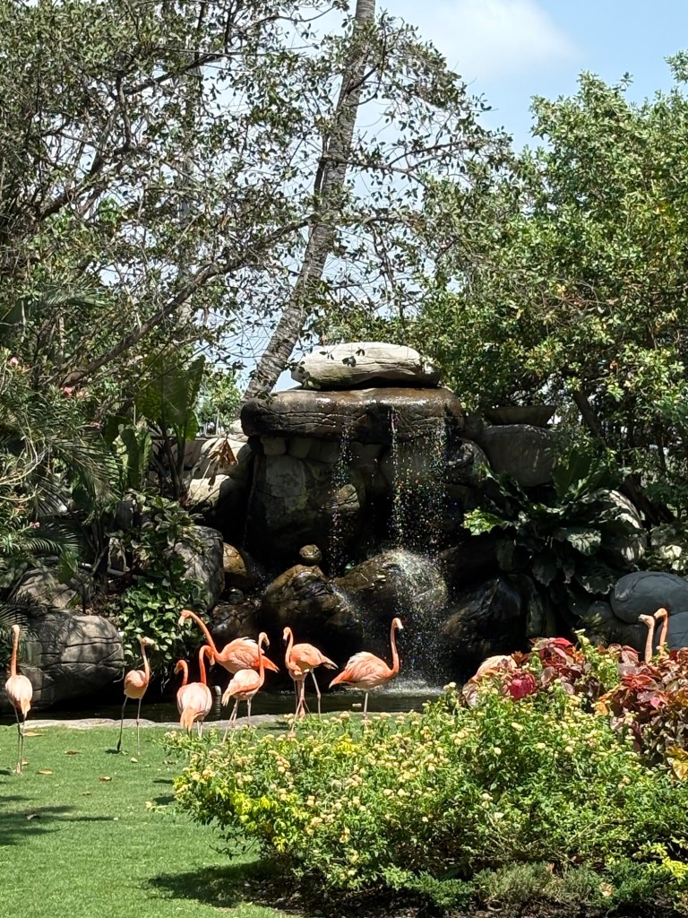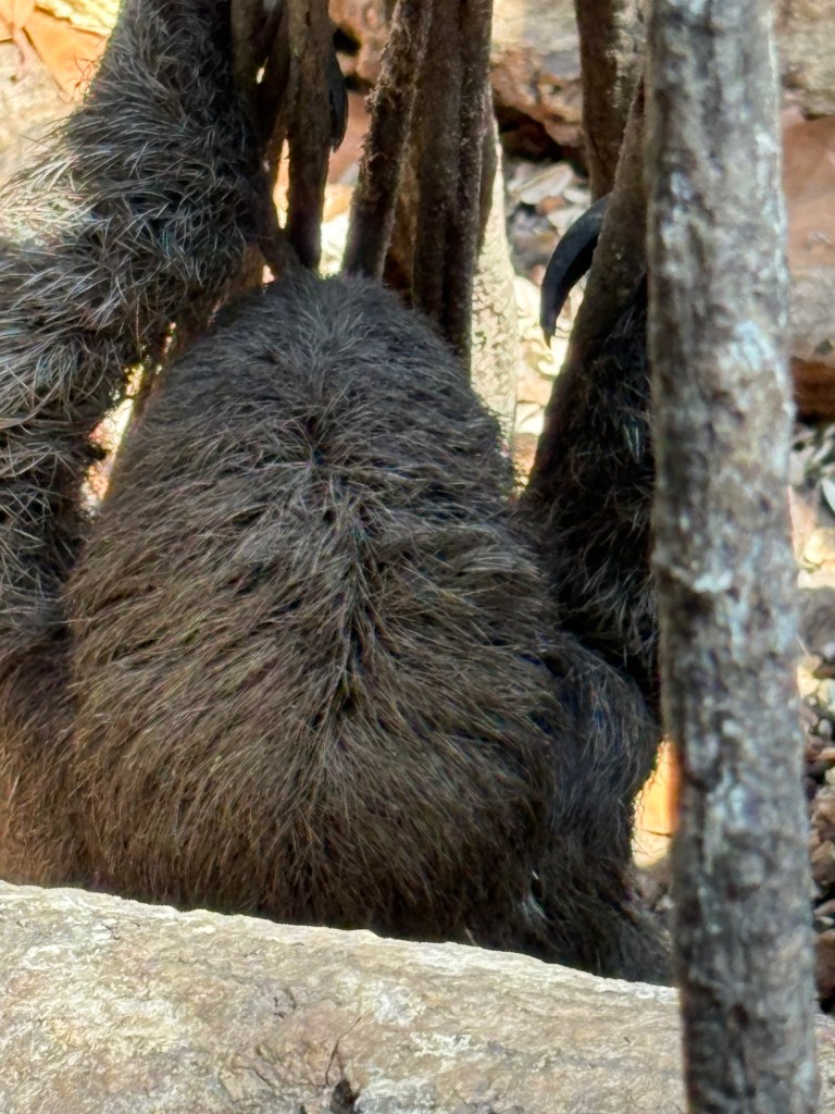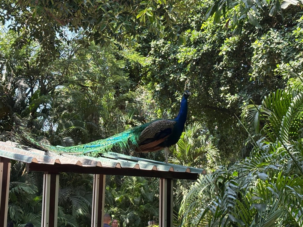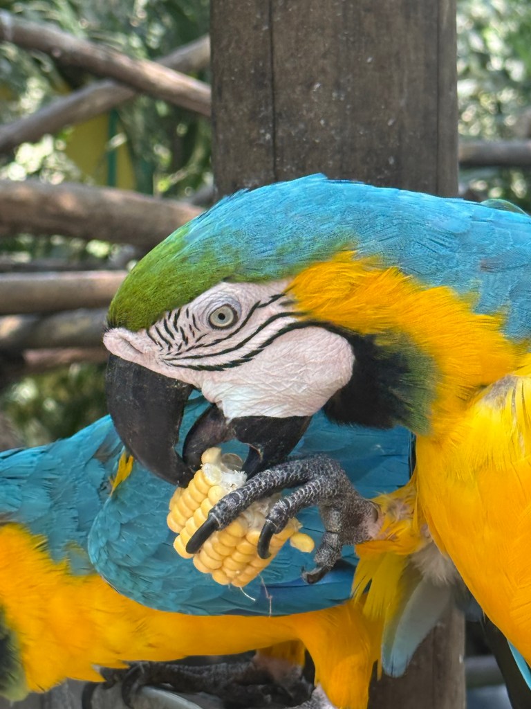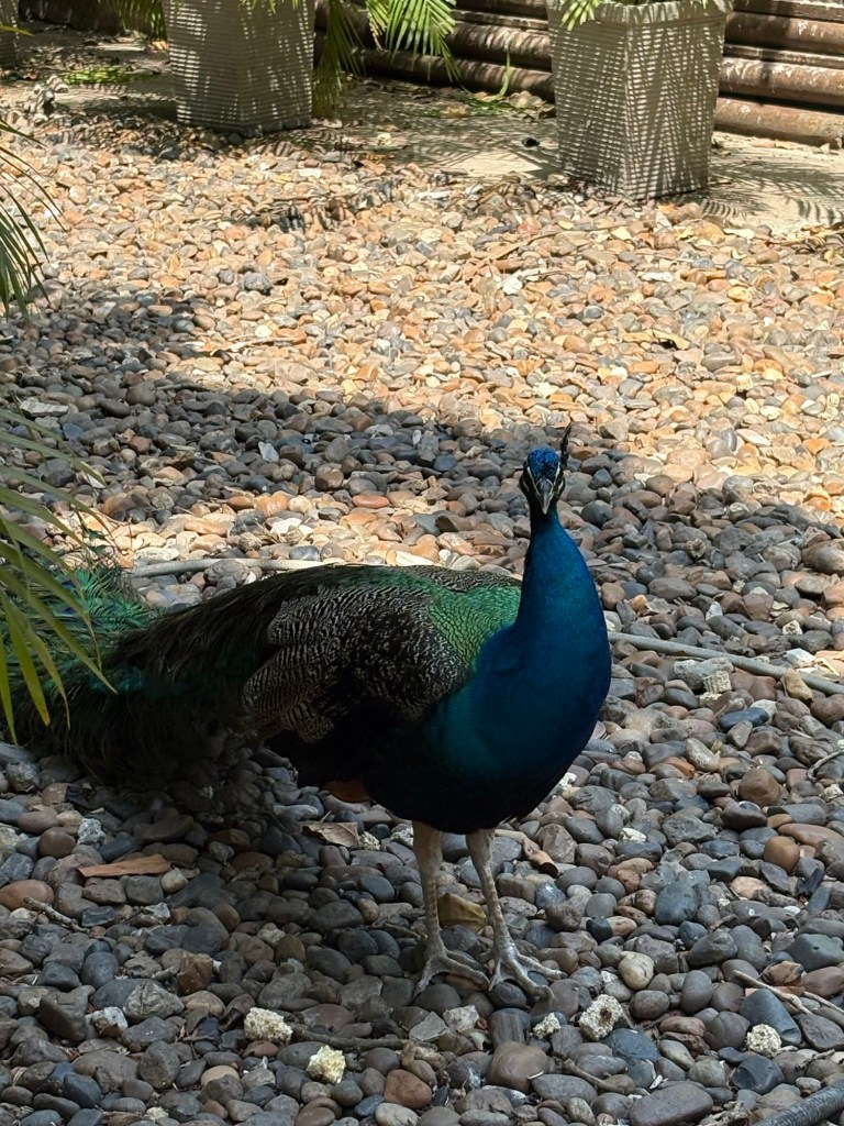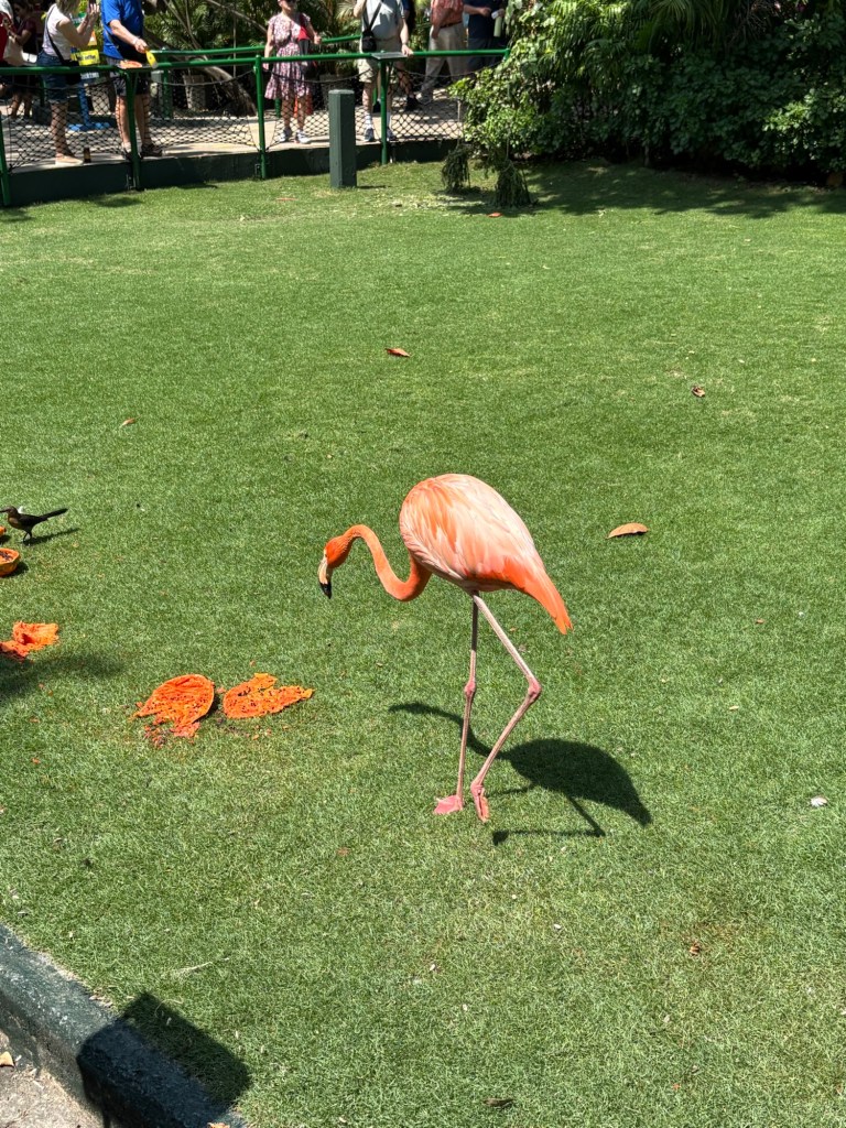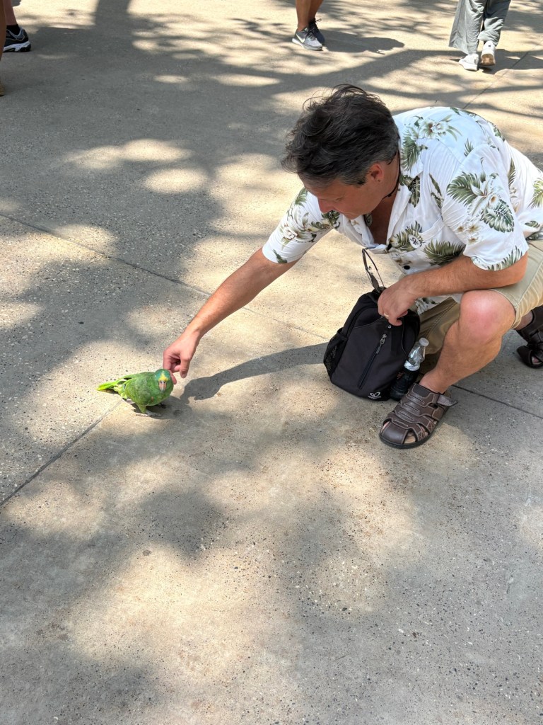 One of the most wonderful parts of our day came about at the end of our tour when we were dropped off at the entrance to the port. The wonderful people of Cartagena built a beautiful (free!) 10,000 square meter eco-park right at the entrance to the port, so tourists coming and going from cruise ships could walk right through it. The park wildlife includes parrots, macaws, sloths, flamingoes, monkeys, and more… we were in heaven! Rob even got to pet a friendly little bird.