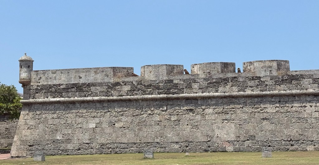 Cartagena is a super cool mix of old and new. It was founded by Pedro de Heredia in 1533, and was considered a very wealthy port city for hundreds of years. Unfortunately this made it very vulnerable to pirate attacks, so it kept getting conquered and re-conquered until the 1800s. It was also a slave trade center until the 1600s, and there is still a strong population of Afro-Caribbean people residing here. Some are called palenqueras, identifiable by their brightly colored dresses and fruit sales. We saw quite a few palenqueras in the city.