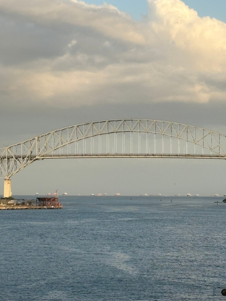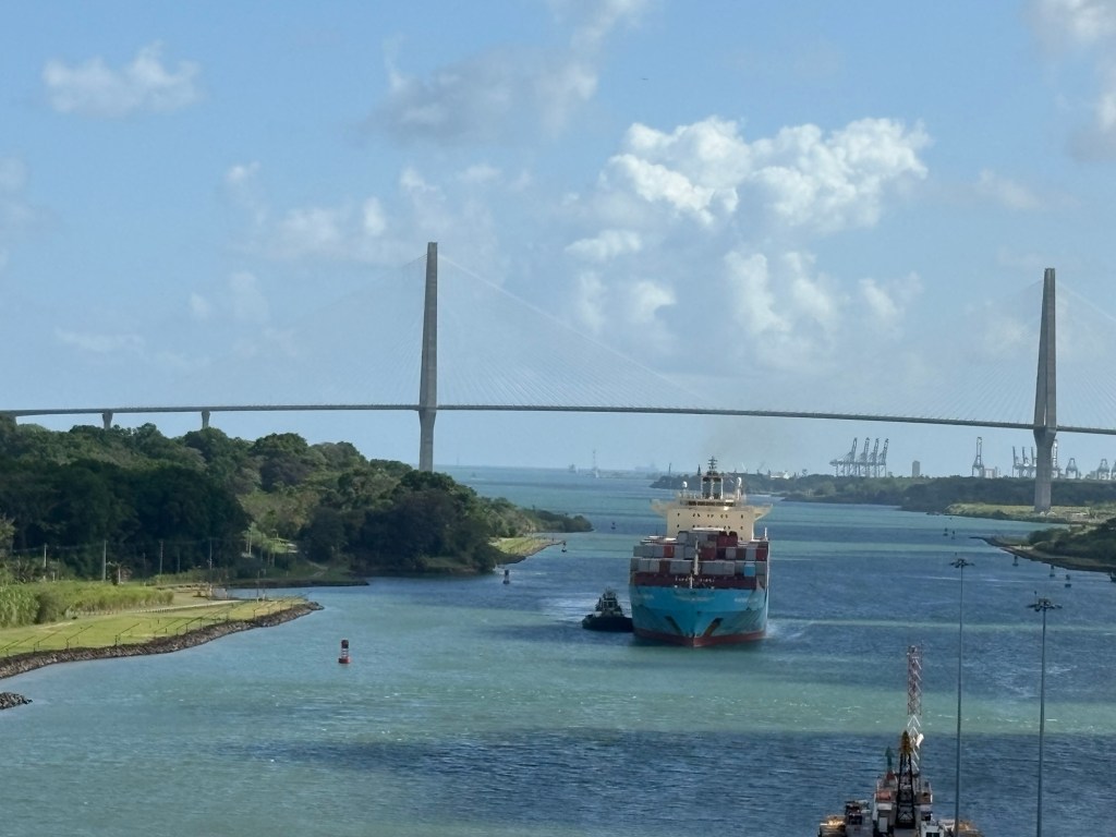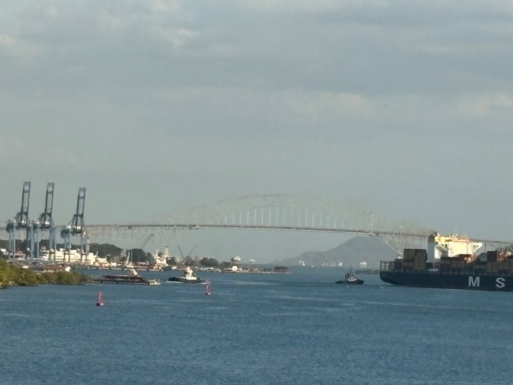 It seemed fitting to end our crossing with a sight that celebrates the working together of North, South, and Central Americas. This beautiful bridge is actually going to be torn down eventually and replaced by another, taller bridge (see cranes nearby).