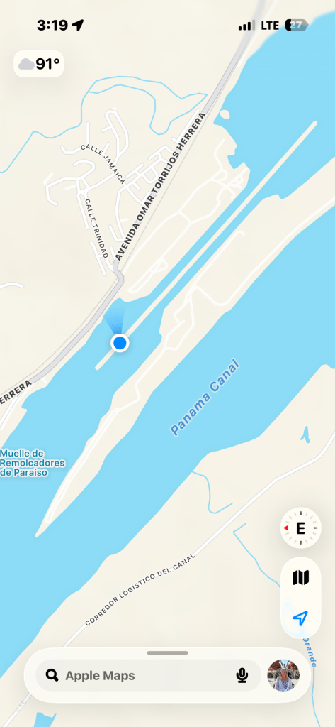 At this point in our day, we’d been in the Canal for over 7 hours and it had started pouring rain. The climate here is much like FL in that it goes from humid, crazy heat to downpour to sunny heat again in very short periods! We got rain off and on for about the next two hours.