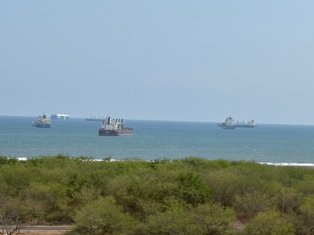 A bit more about Puerto Quetzal- this port is a super busy one for Guatemala, with tons of cargo ships loading and unloading at all hours during our visit, and “lined up” at sea waiting their turns to come into the port. I wish I had taken some better pictures of the port itself stacked with thousands of giant containers, but I did get some pictures of several of the ships waiting at sea for their turns to go into the port. They look distant in the photos, but they were actually pretty close and there were so many of them! It felt weird after all these days at sea to have that many ships so close to us.