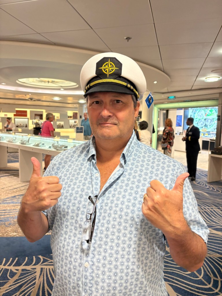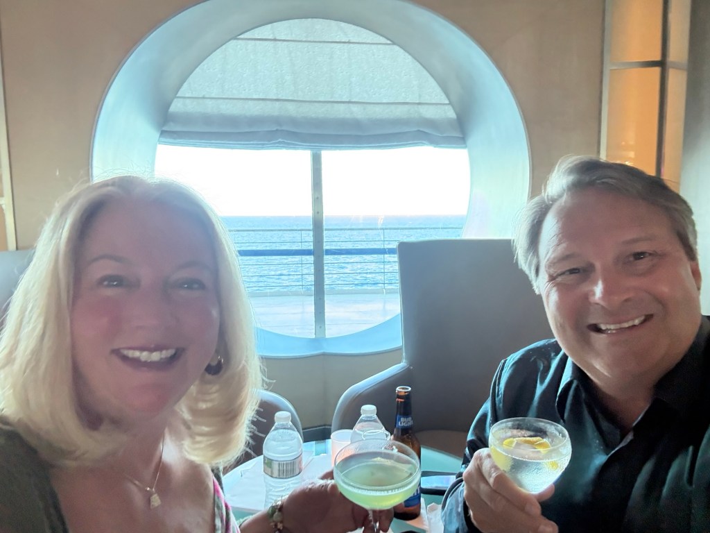 ✅ Rob participated in and won(!) the quarterback challenge, where he had to throw the “American football” across the pool and into a basket. Yes, there were other competitors, and yes, Rob probably the youngest arm by several years, but we’ll still take the win (and the grand prize – a Celebrity pop socket). No pictures because Betsy was waiting for my name to be called and didn’t realize that I was “Bob” for this event. (Betsy’s side note: Just when you think you know your husband of 33 years, he goes and enters a football challenge under the name “Bob”. 🤷♀️)